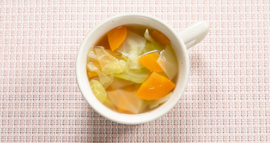 「男子ごはん」にんじんとキャベツのブイヨンスープ。
