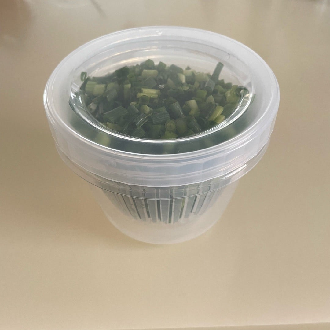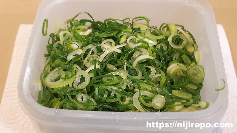 刻みネギはザル付きタッパーで保存すると長持ちする!にじれぽ。