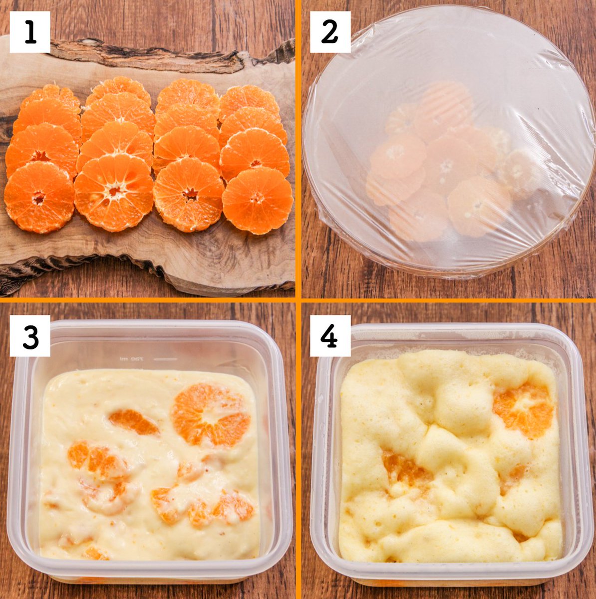 ジューシーみかんケーキをレンジで簡単に🍰。