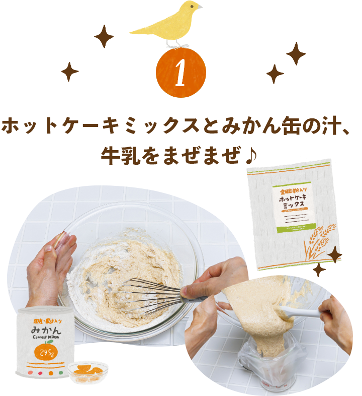 包丁いらずのおやつづくり! 簡単、みかんホットケーキ。