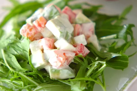 水菜とアボカドわさびドレッシングサラダのレシピトクバイ。