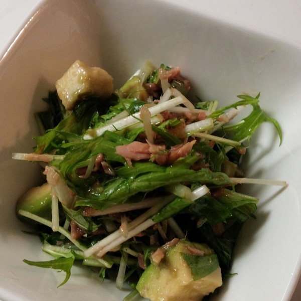 ポン酢で超簡単♪ツナ&アボカド&水菜のサラダ。