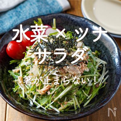 1皿で大満足♪『ツナと水菜のボリュームサラダ♡♡』レシピサイトNadia。