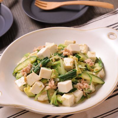 水菜とアボカドのさっぱり☆ツナ豆腐サラダ。