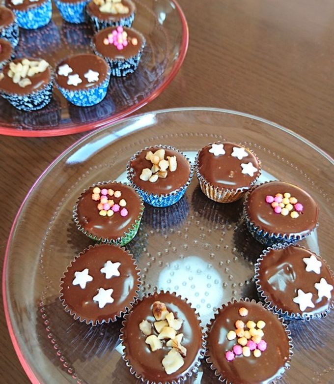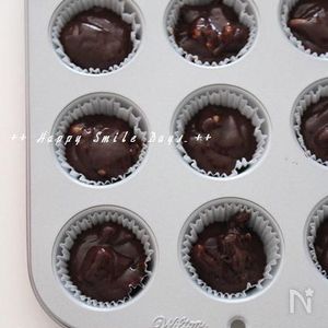 板チョコ1枚で12個!バレンタインに♪プチチョコカップケーキクリチ&くるみ。