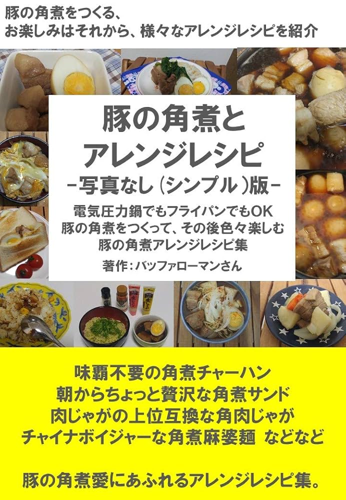 Amazon.co.jp: 豚の角煮とアレンジレシピ 写真なし シンプル版 : 電気圧力鍋でもフライパンでもOK 豚の角煮をつくって、その後色々楽しむ豚の角煮アレンジレシピ集 eBook : バッファローマンさん: Kindleストア。