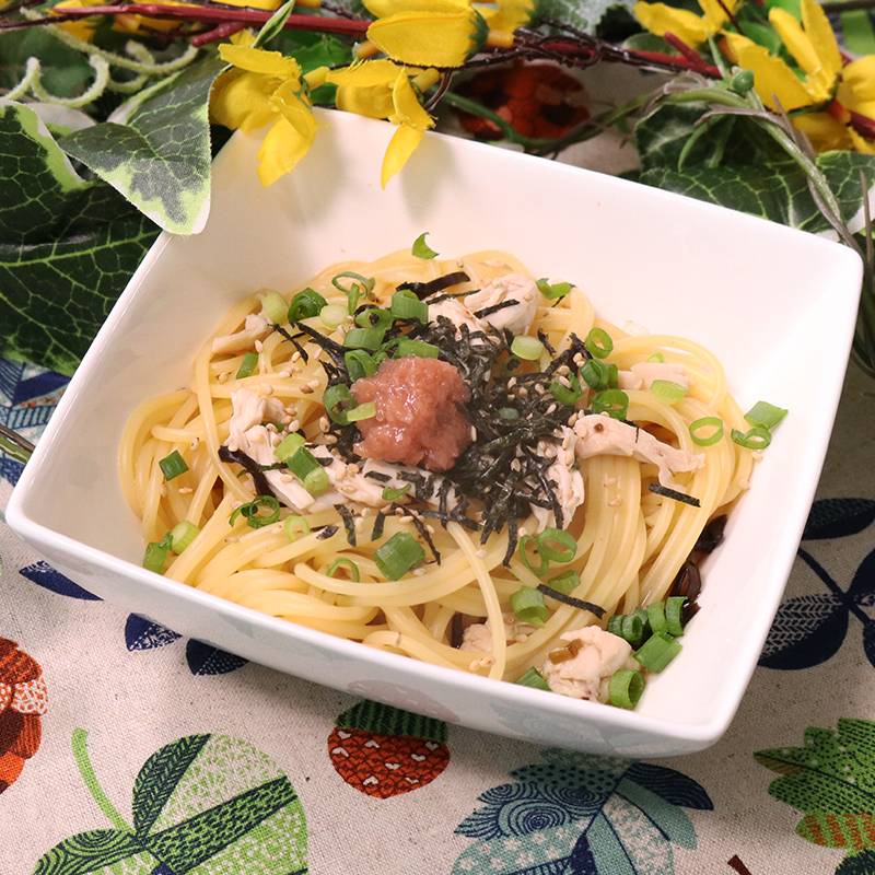 さっぱり ささみと塩昆布の冷製パスタ。