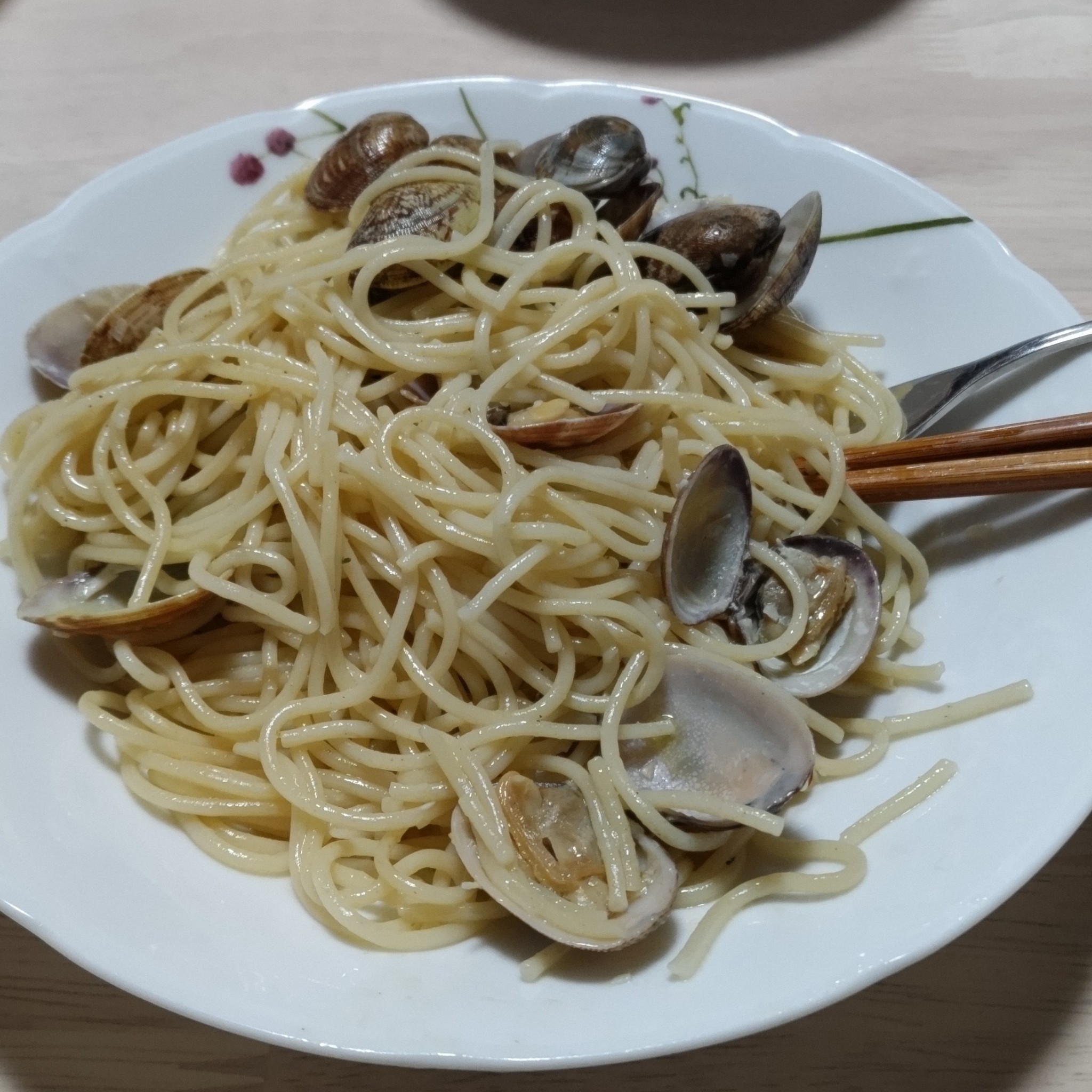海の塩で、ニンニクだけのパスタおりびあ。