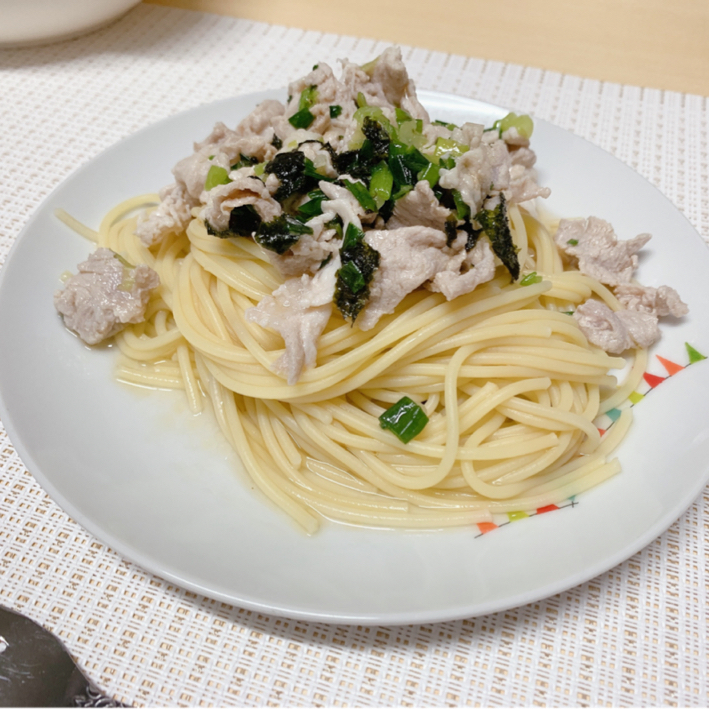 アレンジ無限の塩パスタ 海苔と小ねぎ。