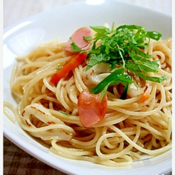 うま塩パスタペペロンチーノ風。