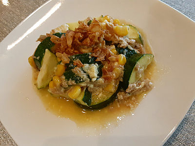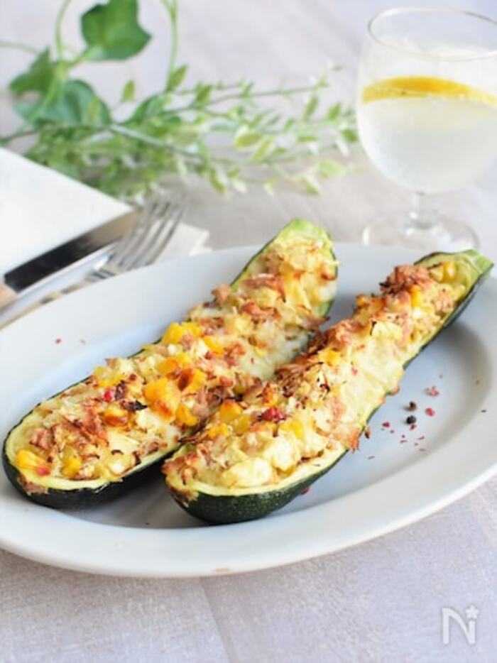 ズッキーニのこんがりツナコーンチーズ焼き。