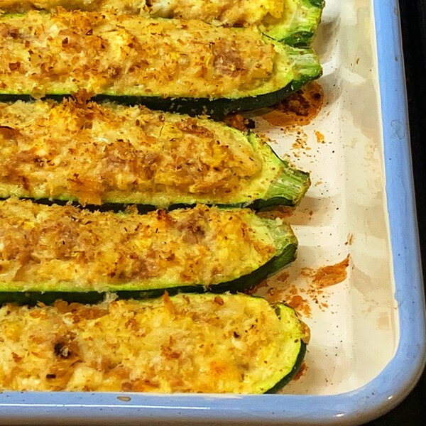 今日の夕食 ズッキーニのツナ味噌チーズ焼きやふーさなぷーの欲張りブログ。