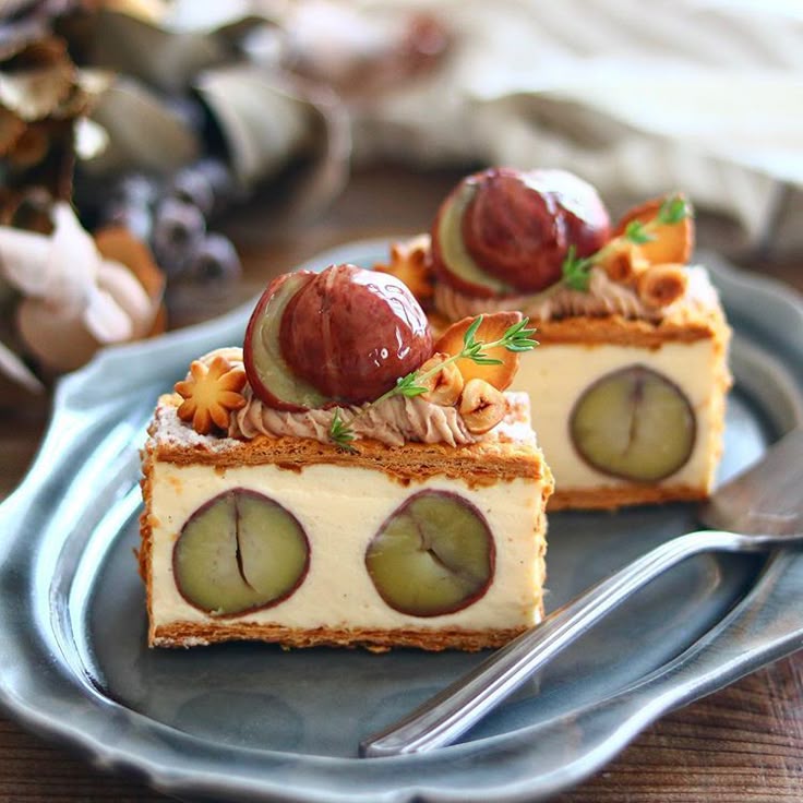 ♬☻☻♫•*¨*•.¸ 中之島にあるフレンチ🍽ヴァリエ ✨ オシャレなデザートの数々✨ ❤︎秋のタルト 茶葉のブリュレ はしばみレーズン❤︎見た目も美しく とっても美味しいデザート😋 ごちそうさまでした💕 ღ˘◡˘ற♡.。oO ☆フレンチフランス料理デザート。