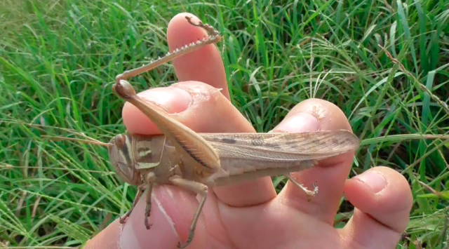 バッタを食べる。