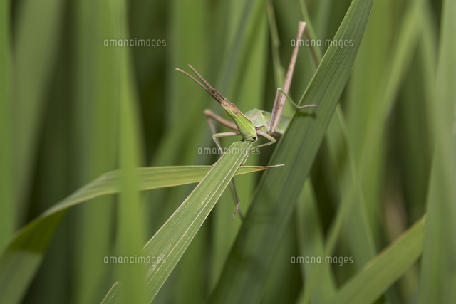夏の水田でイネの葉を食べるショウリョウバッタ 32053008158 の写真・イラスト素材アマナイメージズ。