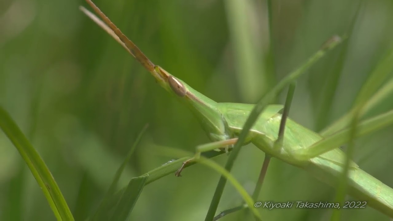 巨大バッタの食事 モグモグと草を食べるショウリョウバッタ ♀- YouTube。
