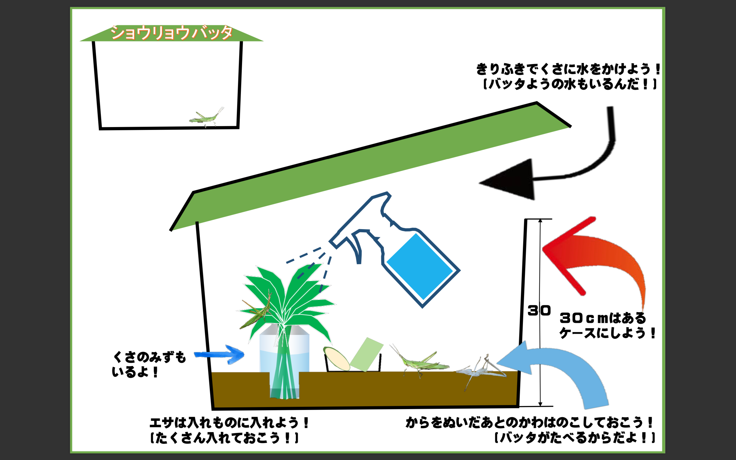 ショウリョウバッタの体のしくみショウリョウバッタを飼ってみよう。
