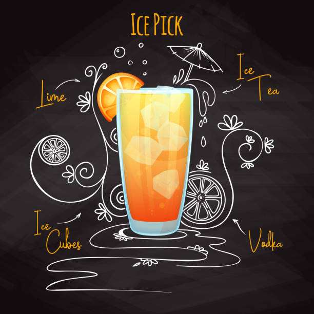 アルコールカクテルアイスピックのための簡単なレシピ黒板にチョークを描くベクトルイラストレーション - アイスティーのベクターアート素材や画像を多数ご用意- アイスティー, 黒板, レモン - iStock。