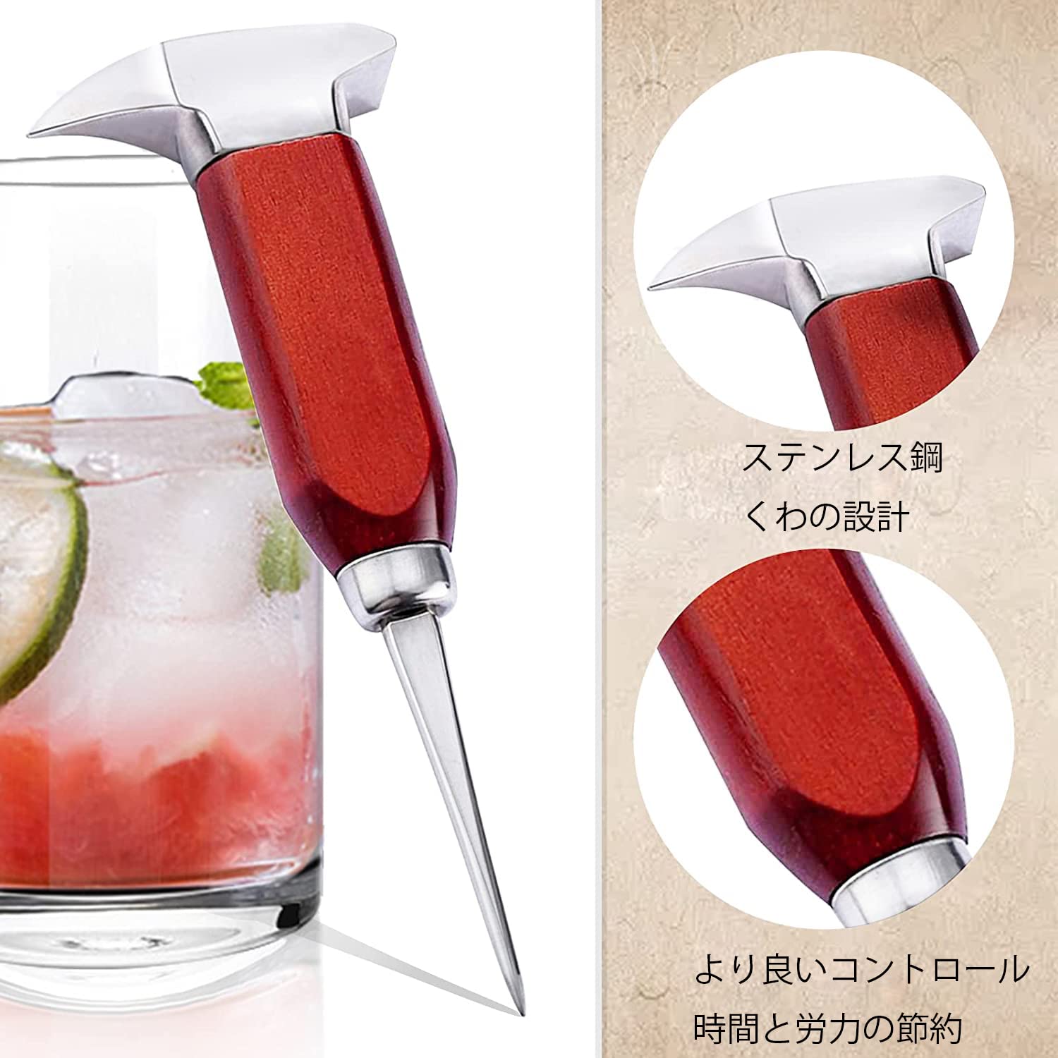 Amazon.co.jp: NOBONU アイスピック アイスピック氷割り 木目 カクテル アイスピック ステンレス鋼 アイスピック持ちやすいハンドル付き : ホーム&キッチン。