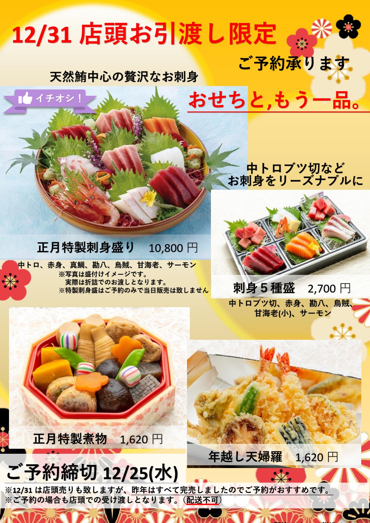 お正月用の刺身盛り、注文承り中! - 新鮮!いちばん!たけの鮮魚。