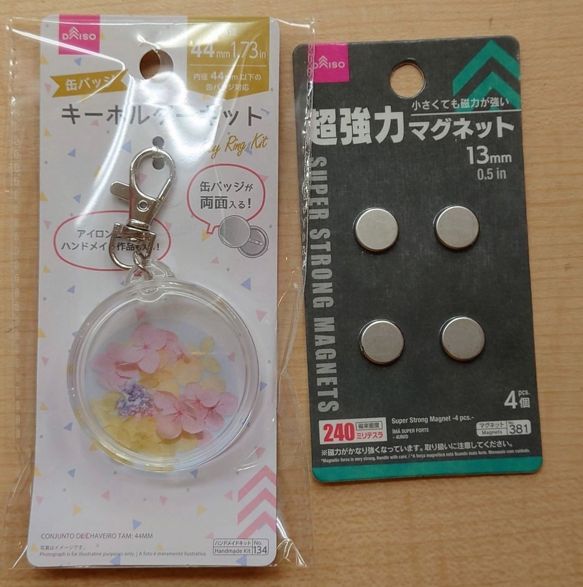 100均ダイソーの缶バッジキーホルダーキット。サイズと活用法をご紹介。