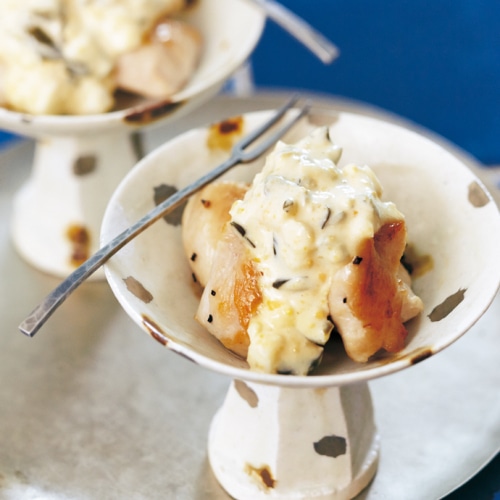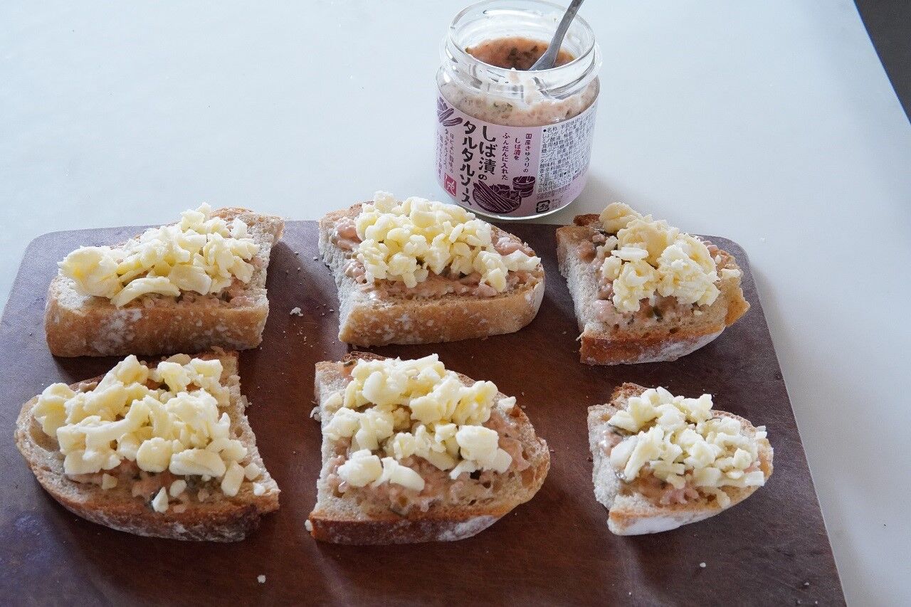 好きな食材にたっぷり乗せて「和風しば漬けタルタルソース」のレシピ。