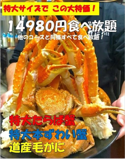 ☆超蟹三昧☆1ドリンク付き タラバ蟹食べ放題コース 100分15180円 税込本ズワイ蟹 食べ放題 かにざんまい 名古屋栄店。