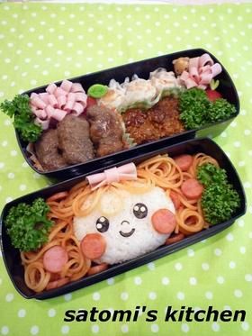パスタとおにぎりで可愛いキャラ弁ガール♬。
