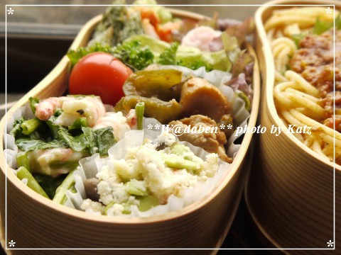 チーズクリームパスタと海老フライのお弁当あゆmemo。