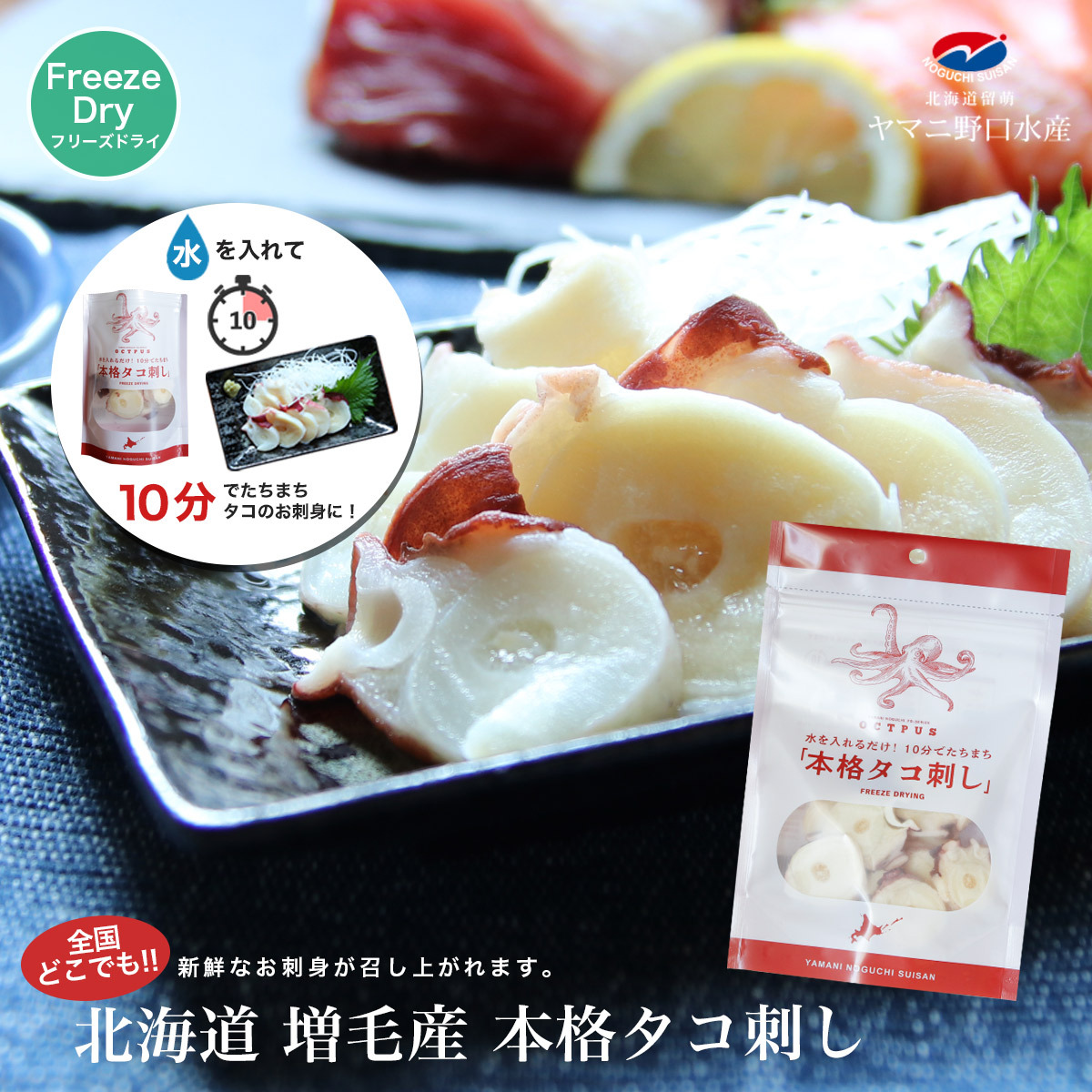 10分でたちまち! 北海道産 本格タコ刺し 20g たこ タコ 刺身 新鮮 北海道 簡単 キャンプ アウトドア ランキング ポイント消化ヤマニ野口水産。