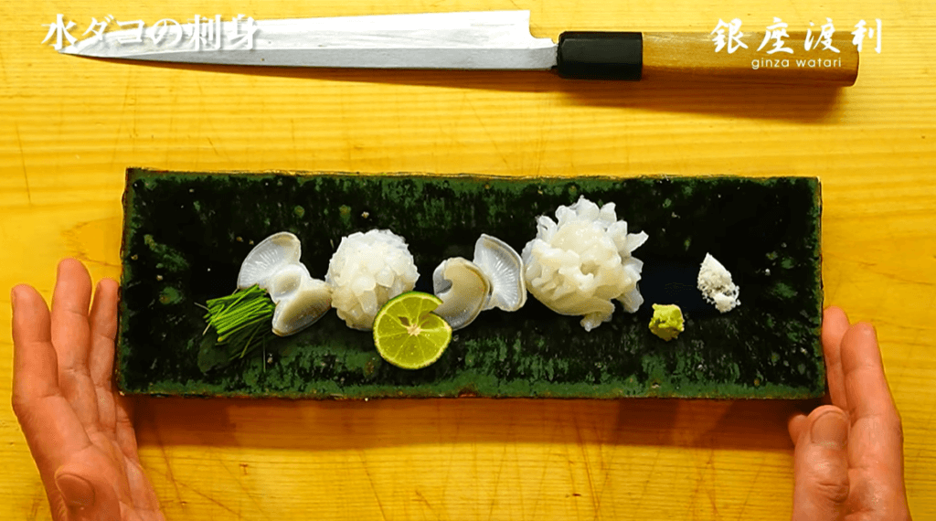 生蛸の刺身、吸盤の湯引き、水タコ - 魚料理と簡単レシピ。