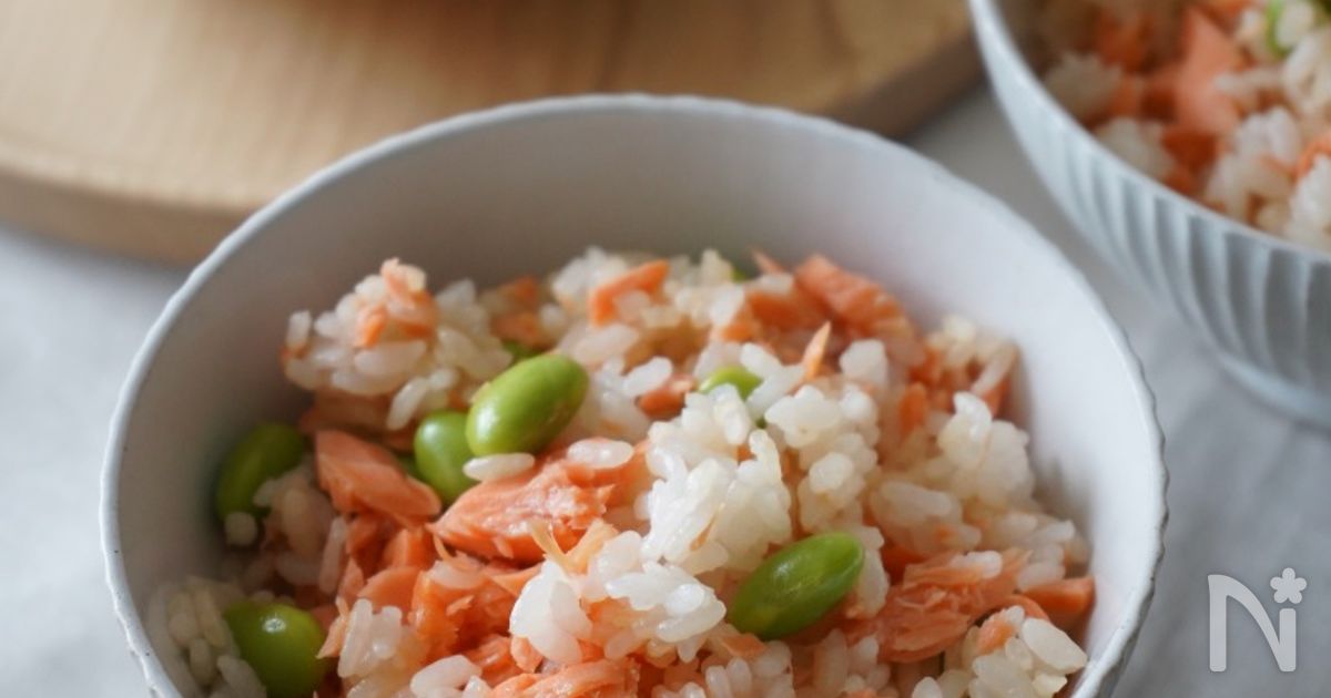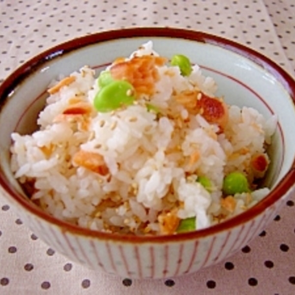 お代わり必至!超簡単!塩鮭と枝豆の混ぜご飯。