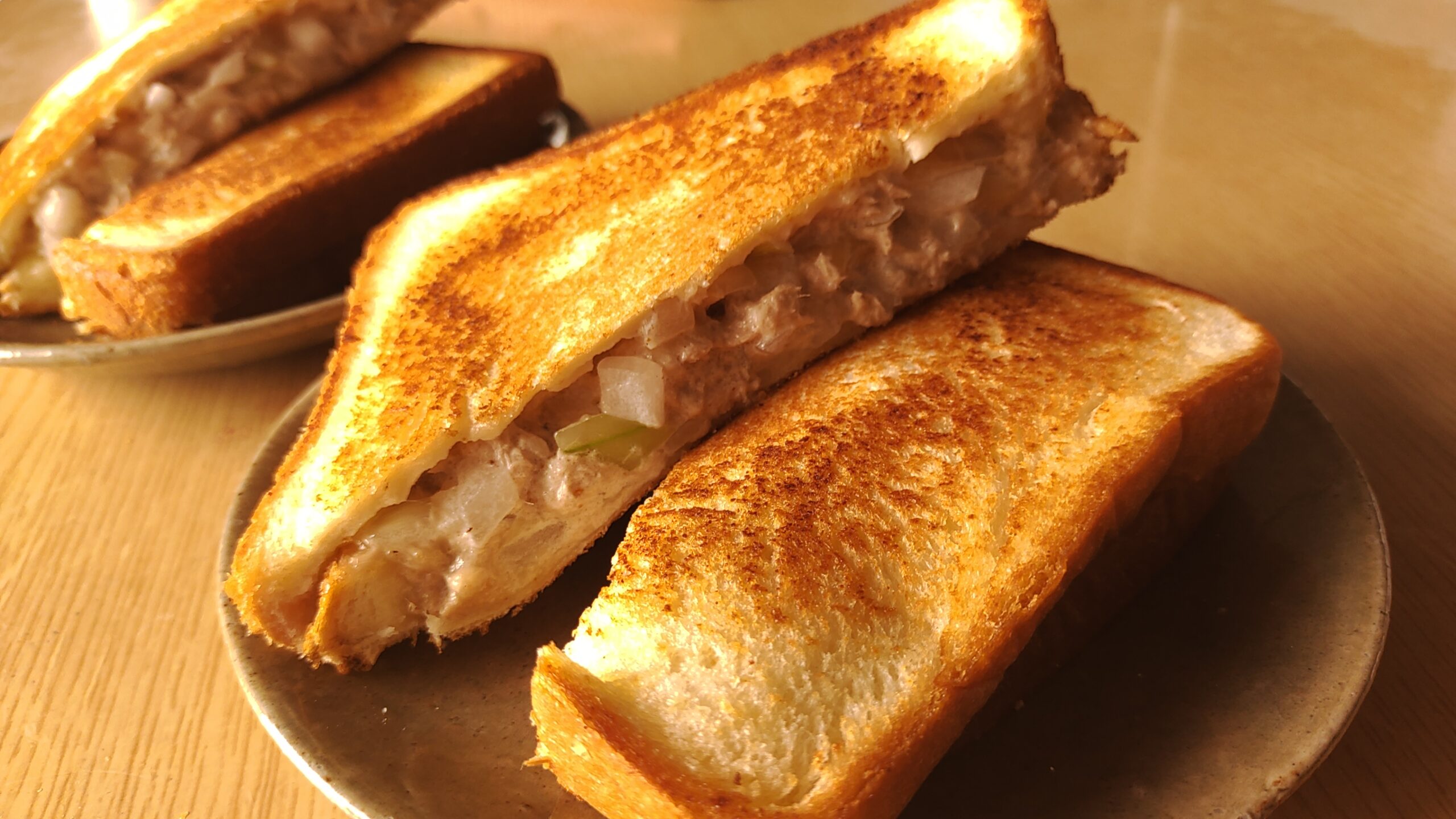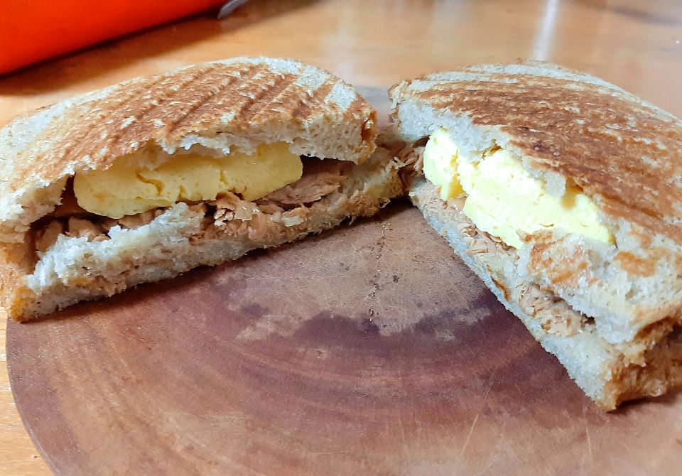 ツナトッピングで簡単に!にんにく醤油と厚焼きたまごのホットサンドmarumarublog。