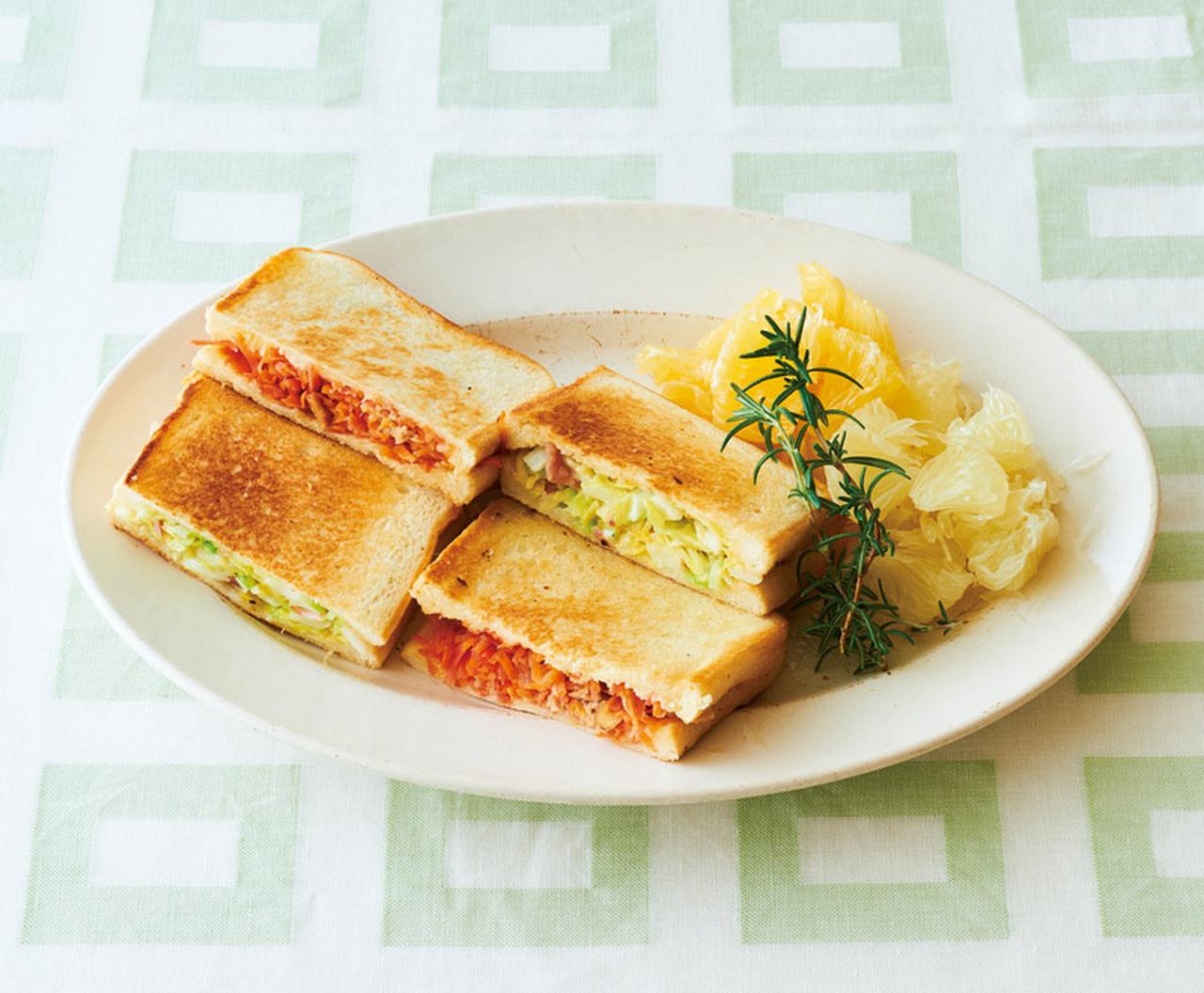 枝元なほみさんのホットサンドレシピ「キャベツとベーコンのホットサンド」「にんじんとツナのホットサンド」のつくり方。溶き卵を上手に使って -天然生活web。