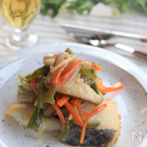 野菜たっぷり♪ タラの中華風甘酢あんかけ。