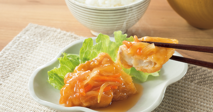 たらの甘酢あんかけ 「Cook Do®」酢豚用病院・介護施設向けレシピ大百科PRO味の素KK業務用商品サイト。