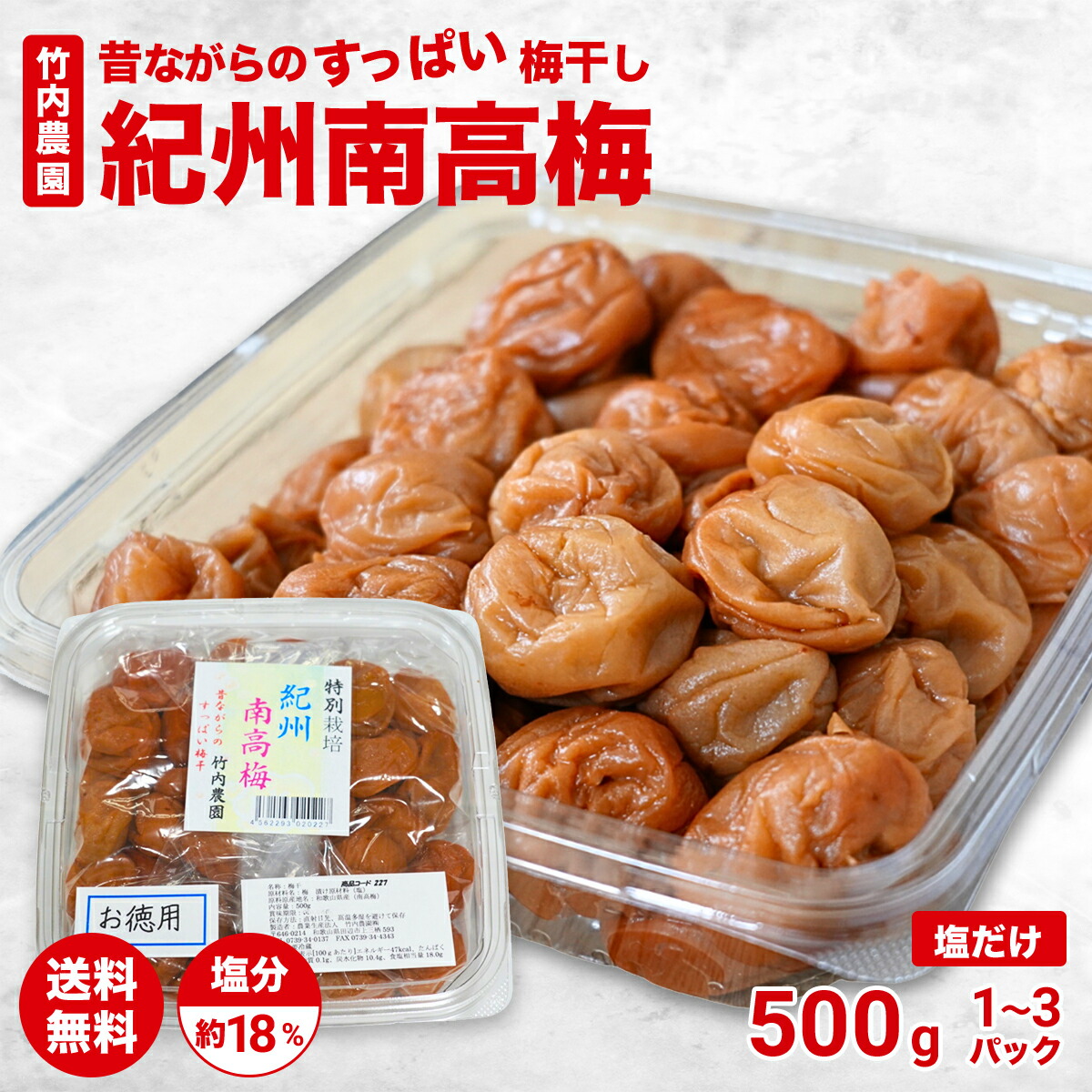 楽天市場 楽天1位 \塩だけで漬けた梅干竹内農園 紀州南高梅 昔ながらのすっぱい梅干 500g 竹内農園 梅干し 梅干 お徳用 1キロ 紀州産梅干し 訳あり 送料無料 塩分補給 梅干し 保存料 無添加 しょっぱい梅干し 酸っぱい梅干し 塩分 梅干し 高い 塩だけ 塩のみ 塩分。