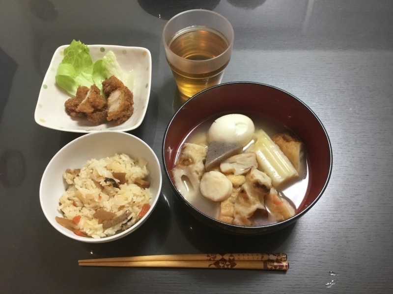 おでんの残りde炊き込みご飯の献立美味しいごはん。