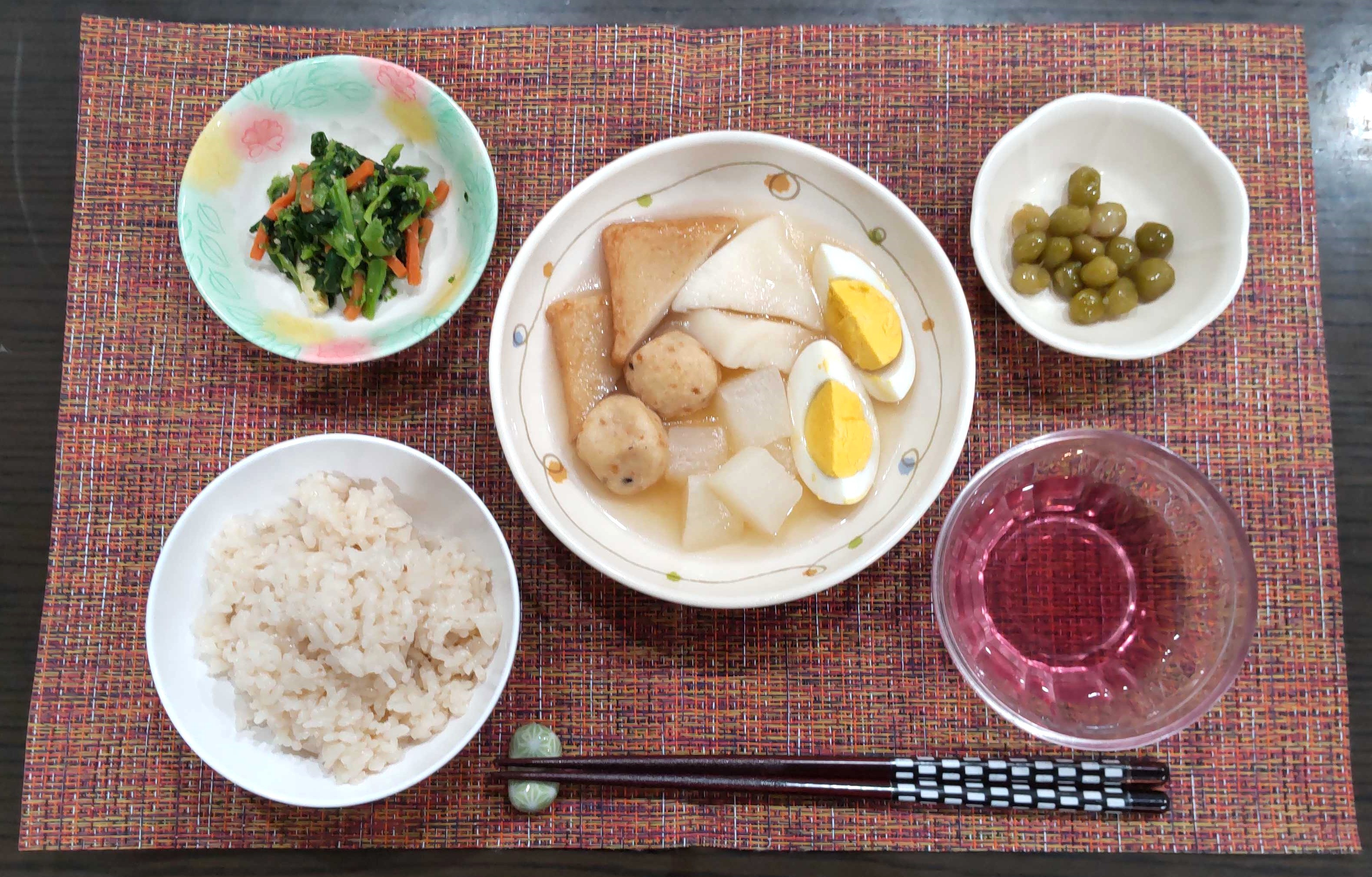 おでんの献立 2023年12月21日の夜ごはん我が家の献立の記録、糖尿病で食事制限、リウマチの記録。