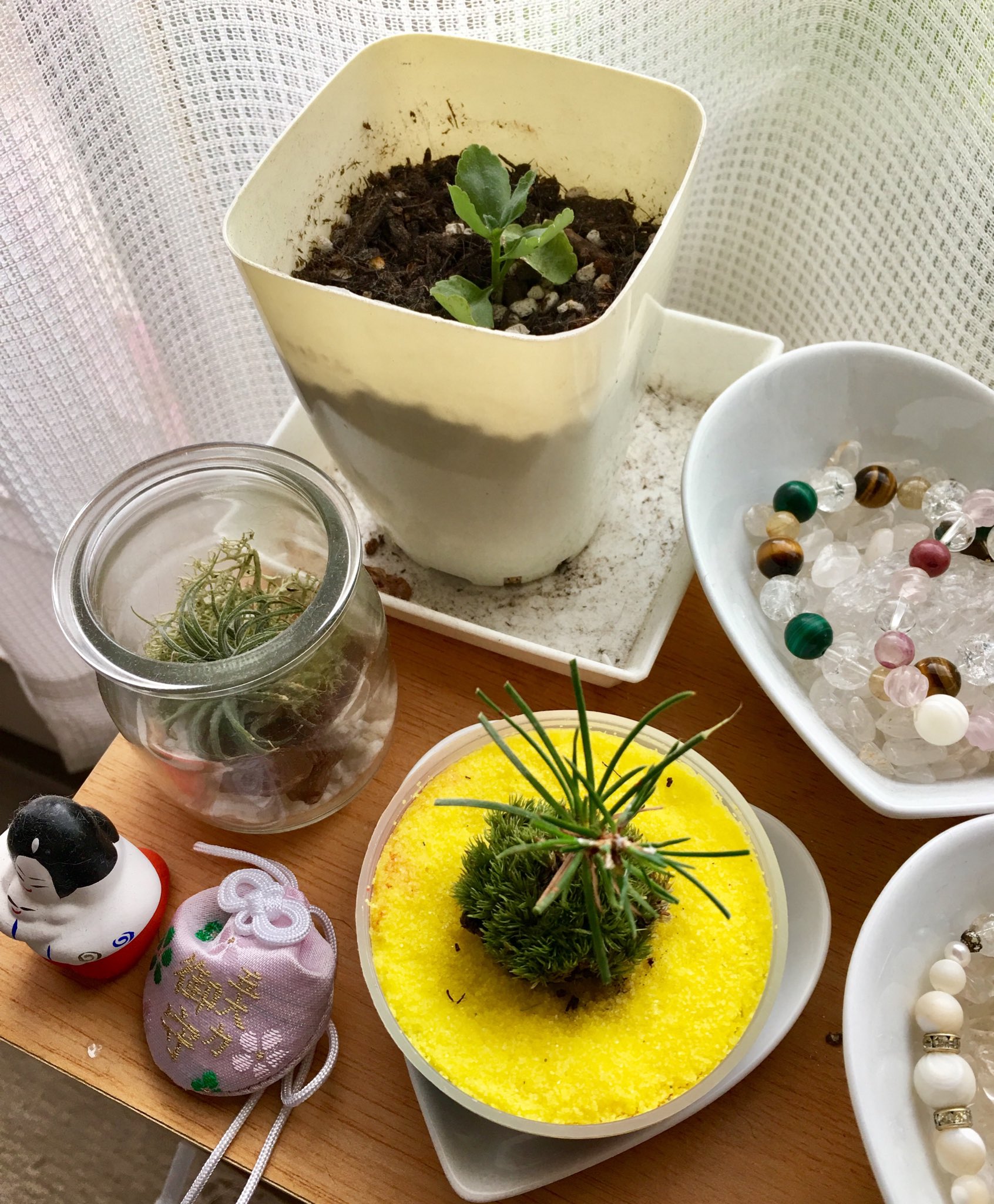 普段はガチャガチャをやらないわたしが、カプセルトイの盆栽セットをもらった 黒松 カワコ。