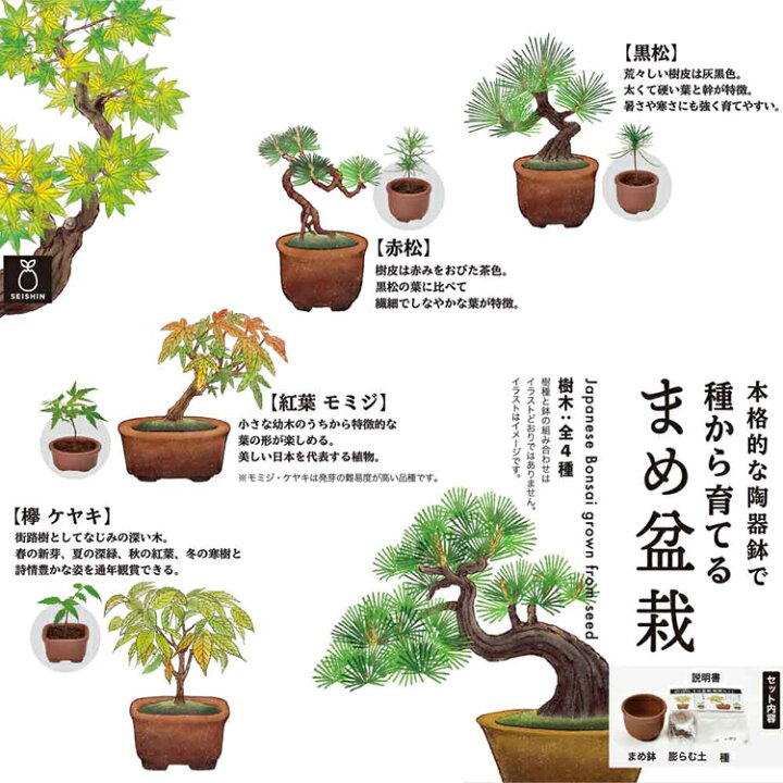 楽天市場4個セット 育てるカプセル まめ盆栽 栽培キット 栽培セット 盆栽 聖新陶芸 SEISHIN ミニ盆栽 BONSAI ガチャ 松 紅葉ケヤキ : 便利生活 マイルーム。