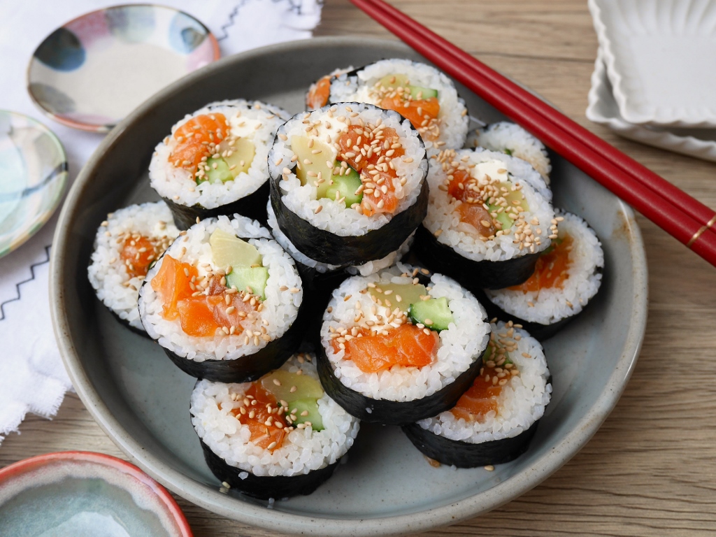 サーモンユッケのキンパ風海苔巻きOlive Oil Life オリーブオイルライフ。