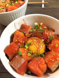 サーモンユッケ丼 by yoshi料理クックパッド簡単おいしいみんなのレシピが392万品。