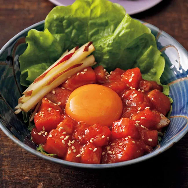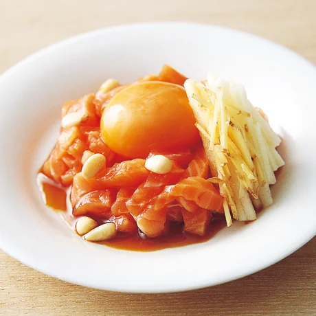 おつまみにぴったりな「濃厚サーモンユッケ」のレシピ。お酒が止まらなくなる罪深いひと品セブンプレミアム公式。