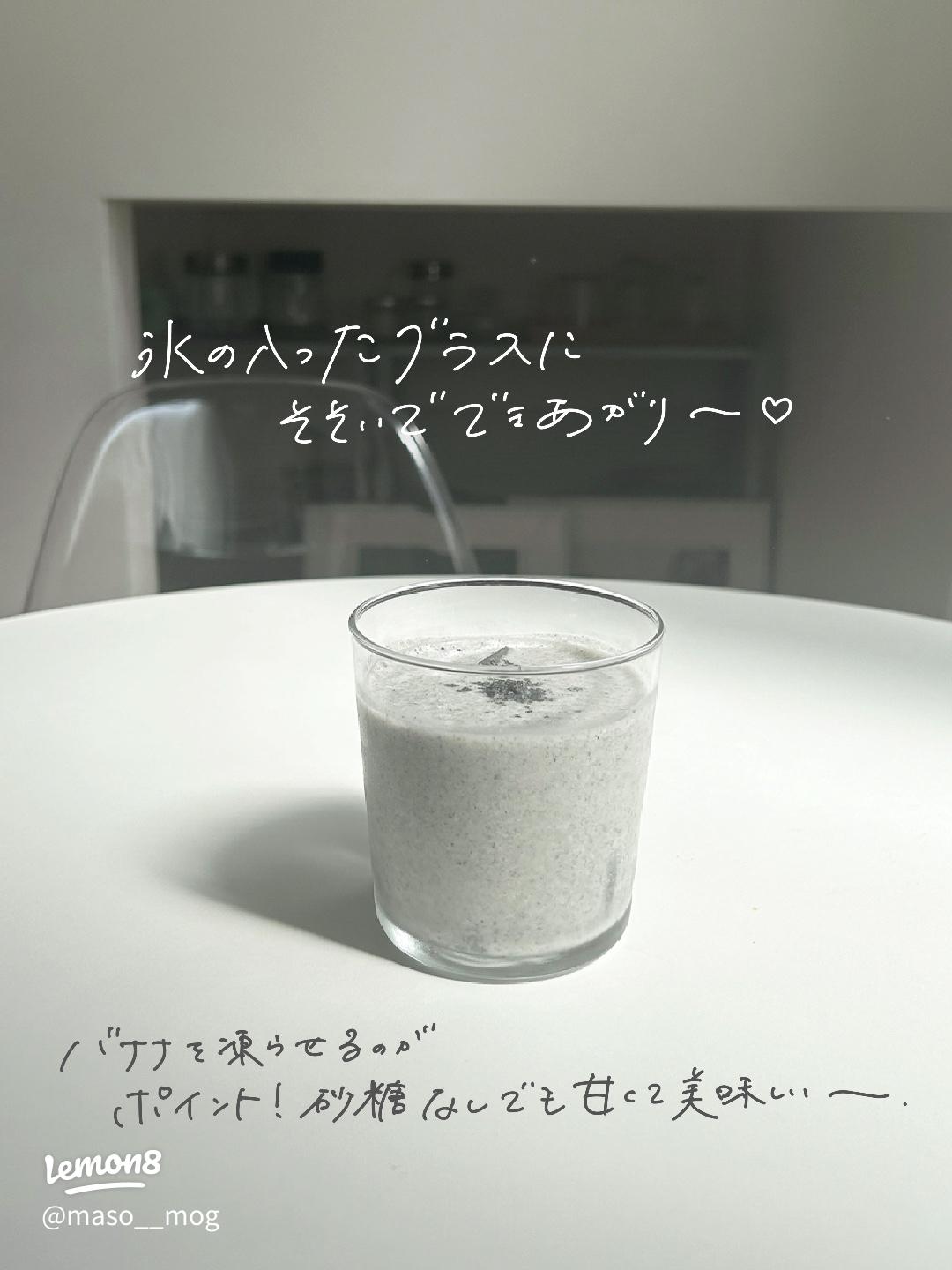 ミキサーなしの黒ゴマきなこバナナジュースレシピ。