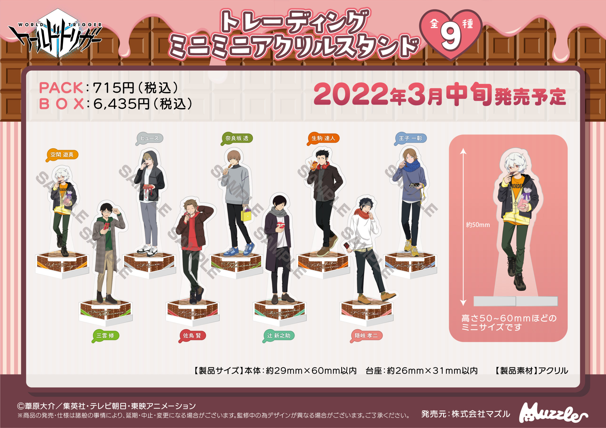 ワールドトリガー トレーディングミニミニアクリルスタンド」 全9種- 「ワールドトリガー」バレンタインテーマのアクスタ、遊真やヒュースがチョコくわえる画像ギャラリー 1 2- コミックナタリ。