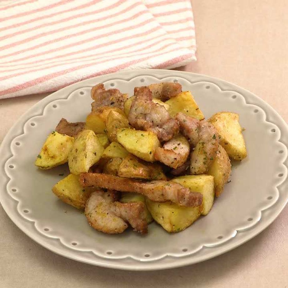 にんにく香る豚こまとじゃがいものバターぽん酢炒め。