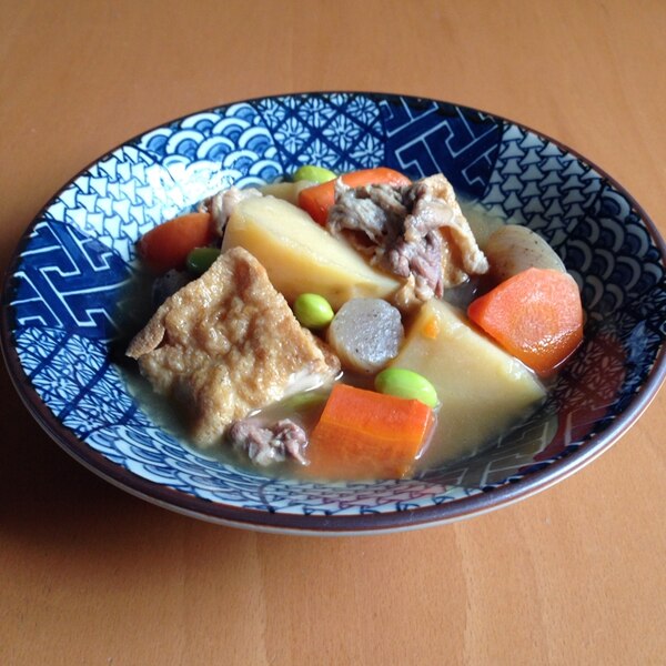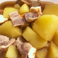 豚肉とじゃがいもとごぼうと絹揚げの煮物。