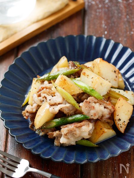 「豚こまとじゃがいものねぎ塩だれ炒め」レシピ。