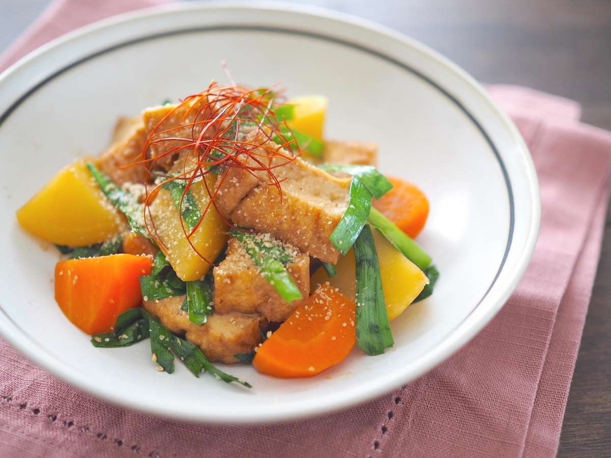 管理栄養士の野菜たっぷりメシ「厚揚げニラじゃが」というご飯もお酒もすすむレシピ - メシ通ホットペッパーグルメ。